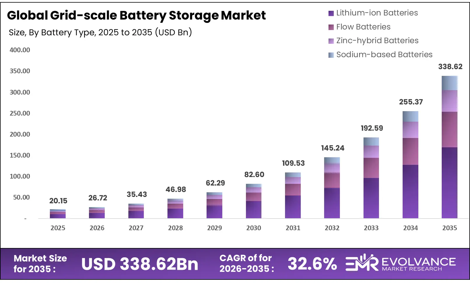 What is the Grid-scale Battery Storage Market Size? The Global Grid-scale Battery Storage Market size will be worth around USD
